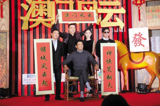 昨天,电影《澳门风云》在京举行首映礼,导演王晶,监制刘伟强,主演周润发、谢霆锋、杜汶泽、童菲、高虎出席仪式。影片将于1月31日大年初一上映。