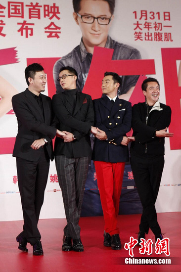 除了被郑恺“强吻”,韩庚还与其他男主创组成了新四小天鹅,笑翻全场,更被华谊老总王中磊“公主抱”,十分“暧昧”。