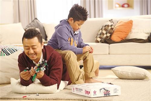 郭涛近日曝光了一组幸福亲子照。“中国式好爸爸”郭涛在与儿子石头一起玩玩具,父子之间亲情流露。