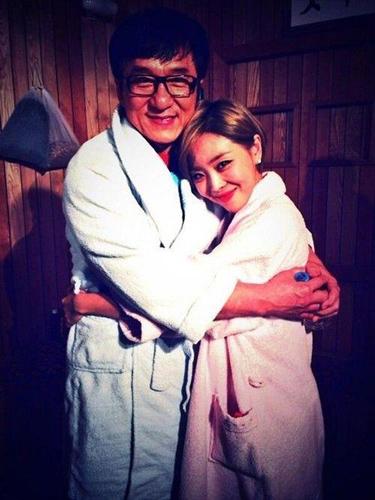据香港媒体报道,自认半个韩国人的成龙,日前赴韩国狂谷新片《警察故事2013》,又跟韩国组合Brown Eyed Girl的Narsha、Super Junior成员崔始源及少女时代主将Jessica等录影综艺节目《Happy Together》,是继担任《Running Man》后,再于韩国的综艺节目上亮相。 Narsha今日在Twitter上载跟成龙的抱抱照,二人穿着录影节目时浴袍肉紧互揽,真心甜蜜!