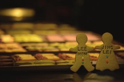 因原本订购的喜饼遭业者提前曝光,深觉隐私被侵犯让王力宏怒退270盒喜饼,经纪人与业者各执一词,衍生出不少风波。王力宏表示对方未照当初的约定履约,擅自对媒体曝光让合作告吹,因此最后决定让巧手的李靓蕾亲自动手做喜饼,给亲友们感受最真挚的诚意。26日王力宏和李靓蕾一同现身发布会烤饼干,还亲密地拥抱、亲脸颊,互喂饼干。但也许是太紧张,李靓蕾被问到“老公的优点”时竟一时语塞,王力宏也马上接话:“我没有优点,我知道了,大家不要逼她了。”李靓蕾又说与力宏认识很久了,但不是歌迷。王力宏在一旁搞笑回应:“你不是说是我的歌迷吗?我好伤心。”事后王力宏说:“这是帮她找台阶下,我会尽量捍卫她。”