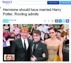 《哈利·波特》作者认错:不该让赫敏嫁荣恩(图)