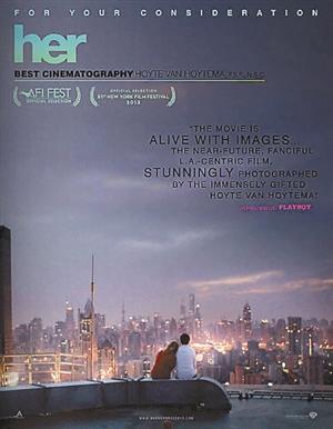 由斯派克·琼斯执导并担纲编剧的《她》继不久前斩获金球奖最佳原创剧本奖后,这次再次摘得原创剧本奖,彰显了琼斯深厚的编剧功力。《她》是一部超现实主义爱情片,讲述一名情路坎坷的寂寞作家爱上了电脑程序里的女声,与“她”坠入情网。除金球奖外,该片还获评洛杉矶影评人协会和国家评论协会最佳影片,并入选美国电影学会年度十大影片。