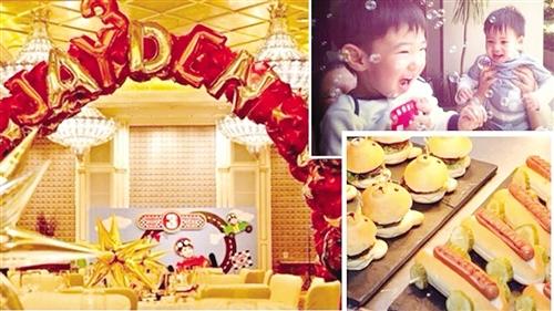 李嘉欣同许晋亨的儿子已经3岁,夫妻俩近日为他举办了盛大的生日派对。不过李嘉欣很想低调,所以没有放出照片,但公关公司传出3张派对的布置照片。现场应该是某酒店的舞厅,有大大的气球星星,还有小动物如长颈鹿等摆设,并附有Jayden的名字。台上有一家三口卡通画做背景,看得出绝对是心思之作。至于食物方面,包括汉堡包、热狗等,让人见到直流口水。
