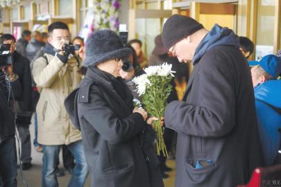 导演谢飞在追悼会现场。