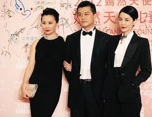 2012年刘嘉玲(左)参加嫣然天使慈善晚宴时与李亚鹏(中)王菲合影