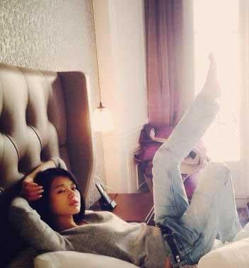 胡杏儿晒躺床自拍照 网友:眼神好销魂(图)