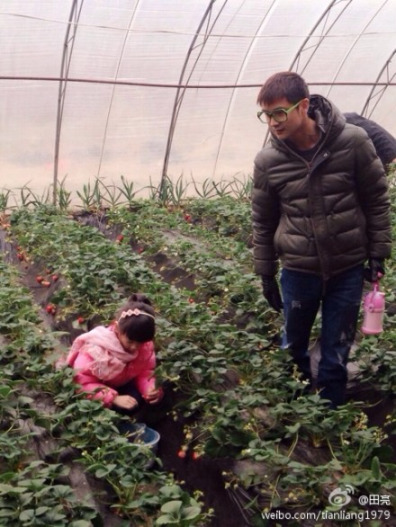 田亮晒和女儿摘草莓照 洁癖发作不准森碟直接吃