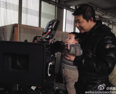 姚晨晒儿子摆弄摄影机萌照(图)