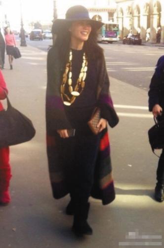 10日下午,王菲御用造型师titikwan在微博晒出一张王菲在巴黎街头的照片,戴着帽子身穿大衣的王菲露出爽朗笑容,而胸前的土豪金粗项链则十分抢镜。网友为该造型起名“最炫民族菲”!