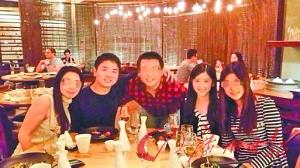 刘强东(左二)、“奶茶妹妹”(右二)在哥大和友人聚会。