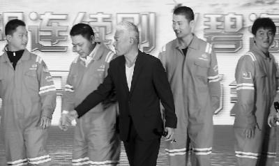 《碧海雄心》的主题曲创作人林夕、周慧敏、古巨基当天也来到现场。古巨基说:“救捞队是一种危险的工作,而他们背后有一种义无反顾地温柔和坚强来自家人、妻子。”周慧敏则表示,希望用歌声向救难英雄表达自己的敬意和感谢。 J179 白继开 摄(记者邱伟)