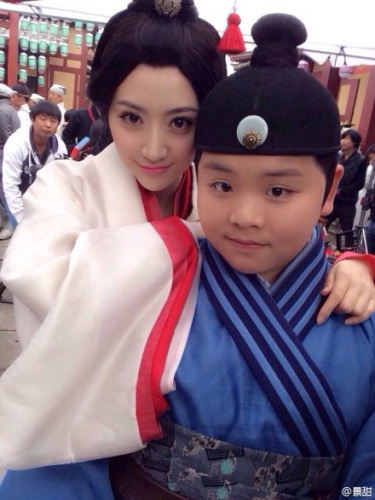 中新网3月31日电 今天晚上,演员景甜在微博晒出了一系列古装剧照,并附上说明:“皇帝和他的小伙伴们”。其中一张照片中,她双手搭在一位微胖小演员的肩上,对着镜头摆出“剪刀手”造型,同时不忘嘟嘴卖萌。