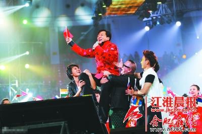 演唱会最后,成龙被众人托起。