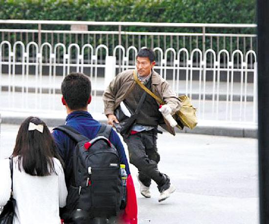 刘德华扮农民贴传单 遭保安驱赶仓惶落跑(图)