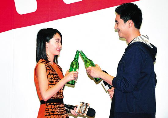北京首映周冬雨、林更新甜蜜“碰瓶”