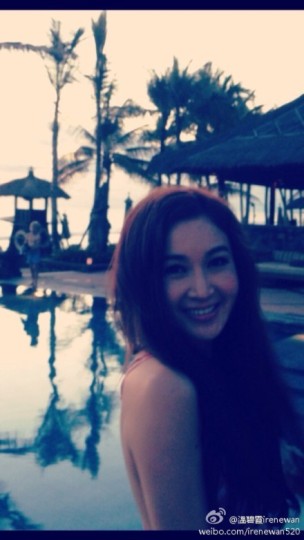 温碧霞年近50宛如少女 携老公养子海边度假(图)