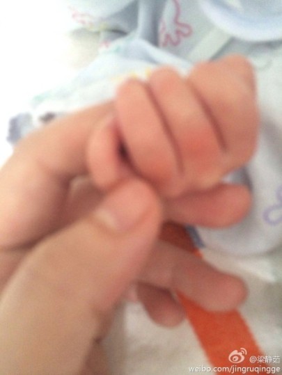 中新网4月28日电 歌手梁静茹4月18日诞下爱子,昨晚她通过微博晒出全家福及大手拉小手的温馨照片,照片中,老公赵元同抱着熟睡的儿子,戴着黑框眼镜的梁静茹依偎在老公肩膀上,笑容甜蜜。另外还有梁静茹的大手拉着儿子小手的特写照片,更是让人感觉温馨十足,心都要融化掉。梁静茹在微博中感叹:“小手拉大手的幸福 我们在这里要谢谢每一位朋友的许多祝福喔!此刻感觉真的好幸福呢。”