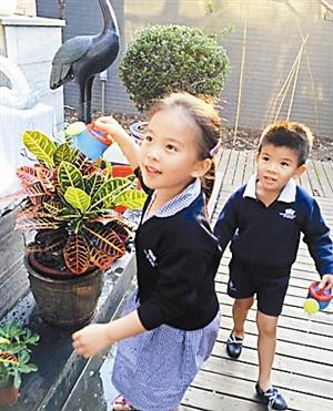 刘涛晒儿女浇花萌照 儿子浓眉大眼十分帅气(图)