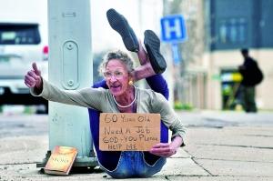 据英国媒体报道,前《花花公子》杂志模特,60岁的柔术艺术家克里斯塔·麦肯纳近日出现在美国街头,用她惊人的柔韧技艺卖艺乞讨。她手里举着一个牌子,上面写着:我今年60岁,需要工作,请上帝和你们帮帮我。如果足够幸运,她每天能在街头赚到7美元。据了解,麦肯纳在1970年代曾是美国著名杂志《花花公子》的模特(如图),以“蜘蛛女”的名字被大家熟知。
