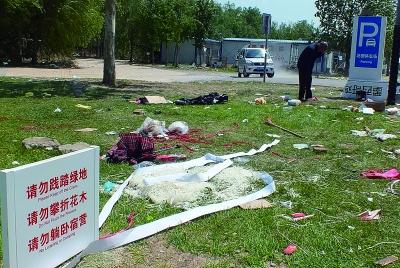 对于公园内踩坏的草坪和花木,绿化队的工作人员李先生表示,在环卫将垃圾清理的同时,他们只能重新铺种草坪,购买苗木再次种植,要想恢复得和音乐节前一样,大约需要一个月时间,“今年的草坪受损比往年严重,劳动量加大,还要请一些临时工人”。