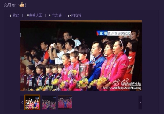 中新网5月6日电 5日,世乒赛团体决战结束,中国队包揽了男女冠军,孔令辉带领五位金花上台颁奖。随后,女星马苏在微博上分享前男友孔令辉领奖的视频截图,并为其点赞。