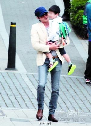 张东健接儿子放学 父子首度被拍下合照(图)