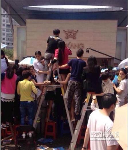 金秀贤现身引商机 商家向粉丝出租爬梯和凳子(图)