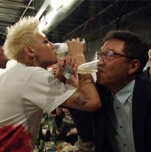 据韩国《亚洲经济》报道,人气组合EXO成员黄子韬公开了自己与SM娱乐老板李秀满喝交杯酒的照片。