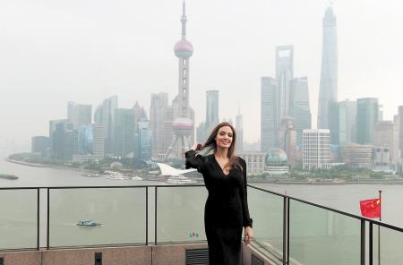 安吉丽娜·朱莉现身上海 与东方明珠合影(图)
