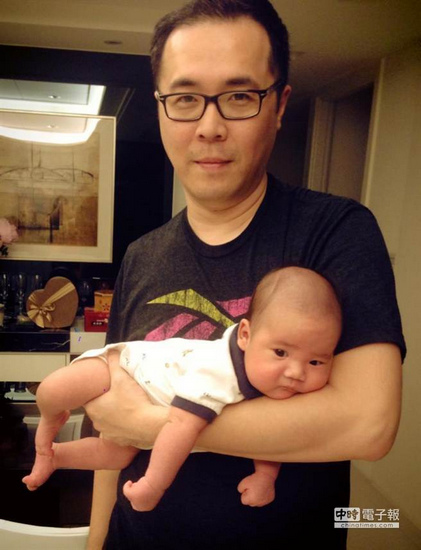 梁静茹老公晒“美式足球抱娃法” 儿子发呆(图)