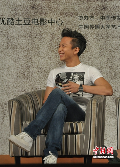 讲座上播放了《分手大师》的预告片,台下学生笑得乐不可支、掌声不断,这让邓超脸上浮现出几分得意的神情。