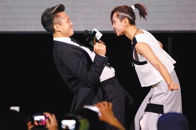 邓超“耍贱”上瘾,与周笔畅大跳扭扭舞。