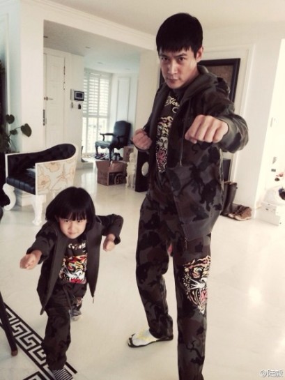 陆毅晒与女儿搞怪合影 贝儿打拳萌态十足(组图)