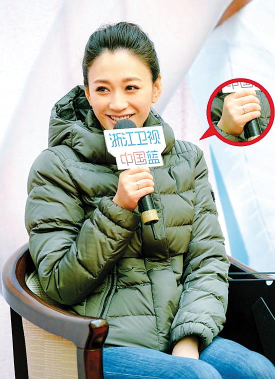 李小冉今年情人节前夕出席宣传活动时,无名指上戴着钻戒。