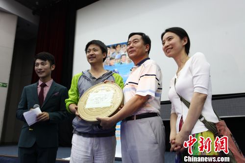 中新网6月28日电 6月28号,电影《浅蓝深蓝》与中国电影博物馆公益放映及捐赠仪式于中国电影博物馆举行。导演袁卫东与编剧张馨月、影片中教练的扮演者莫少聪,资深媒体人钟思潜等出席。