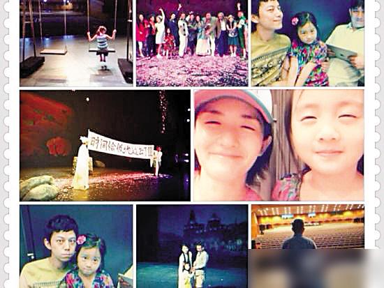 黄磊在微博上晒出谢娜与多多(右)的亲密合影
