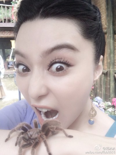 照片中,范冰冰把蜘蛛放在自己胳膊上,并瞪大双眼做出一口咬下的样子,让一众网友纷纷感叹范冰冰霸气十足。