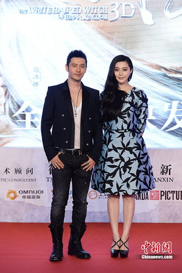 28日,电影《白发魔女之明月天国》在京举行首映式,导演张之亮、监制黄建新携主演范冰冰、黄晓明、童瑶、严屹宽出席助阵。