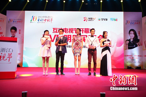 中新网8月11日电 8月10日下午,由华数传媒主办的“互动十年,天赐良机”2014中国(浙江)互动电视节开幕式暨TVB明星见面会在杭州隆重举行,TVB人气小生萧正楠、“最上镜港姐”李诗韵、“索腿天后”陈敏之特别亮相助阵。