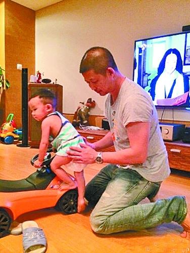 老公与儿子玩耍 无视身后播放的姚晨新剧(图)