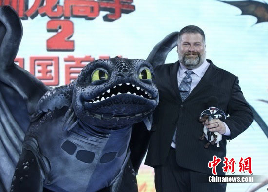 12日下午,美国梦工厂年度巨制动画片《驯龙高手2》在上海举行首映礼,导演迪恩·德布洛斯和中文版配音演员蒋雯丽、白百何出席捧场。