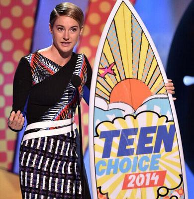 据英国《每日邮报》8月11日报道,由福克斯广播公司举办的年度颁奖典礼“青少年选择奖”(Teen Choice Awards)于当地时间8月11日在洛杉矶举行。演员谢琳·伍尔德(Shailene Woodley)和安塞尔·埃尔格特(Ansel Elgort)凭借《星运里的错》(The Fault in Our Stars)横扫多个奖项。