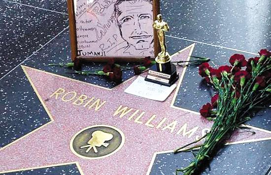 星光大道威廉姆斯的星星旁,已经有影迷送上鲜花、画像和小金人