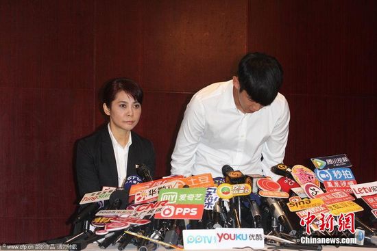 8月30日,柯震东出席台北道歉会,柯震东在经纪人柴智屏的带领下走进会场,与昨天痛哭不止相比,今天柯震东比较平静。图片来源:CFP视觉中国