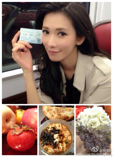 林志玲乘高铁晒照片 穿风衣与列车“合影”(图)