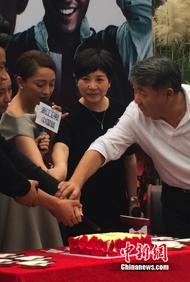 周迅庆祝生日和导演郑晓龙一起切蛋糕