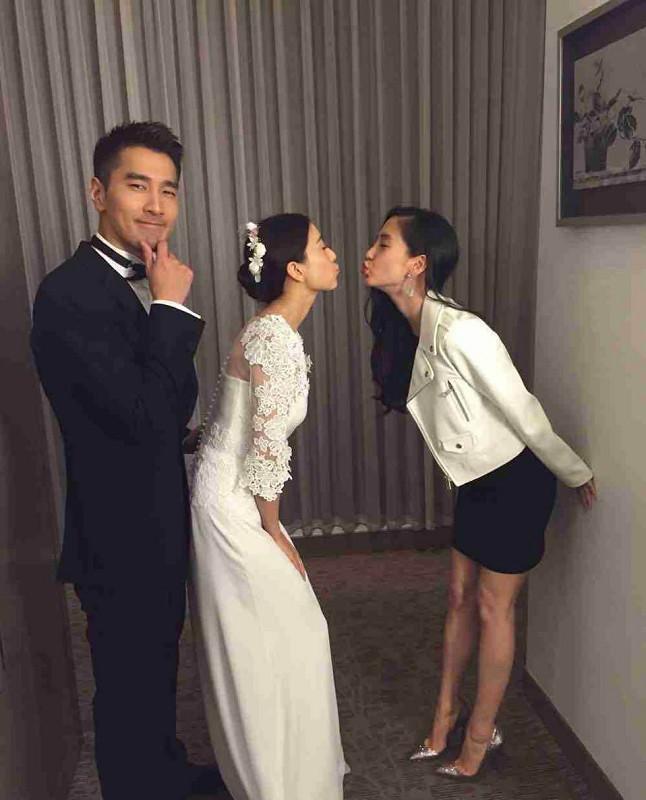11月29日中午,Angelababy在微博中晒出了参加高圆圆、赵又廷婚礼的照片,其中一张她与高圆圆都噘起嘴巴做亲吻状,而赵又廷在旁边托腮做沉思状,场面十分搞笑。微博中,Baby感性地说:“相信美好,祝福!听到他们的誓言,我们在台下纷纷感动落泪,看到他们的恩爱,我们在心里默默祝愿永远幸福!昨天真的好感动!看着他们一路走来,一起踏上台阶宣誓,感觉世界的美好不只童话故事里才有!早点生个小宝宝吧!”