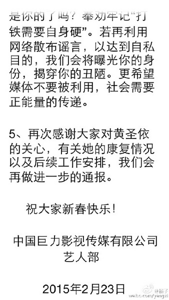 上一页 巨力传媒发声明否认黄圣依借奥斯卡炒作(图)(5) 查看下一页