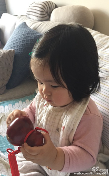 阿雅女儿萌照曝光 摆弄葫芦大笑露乳牙(图)